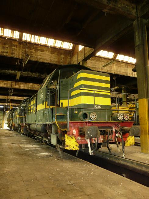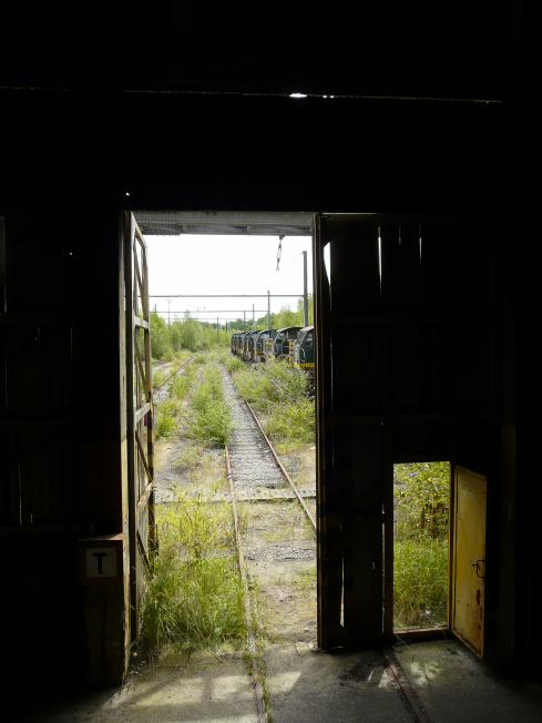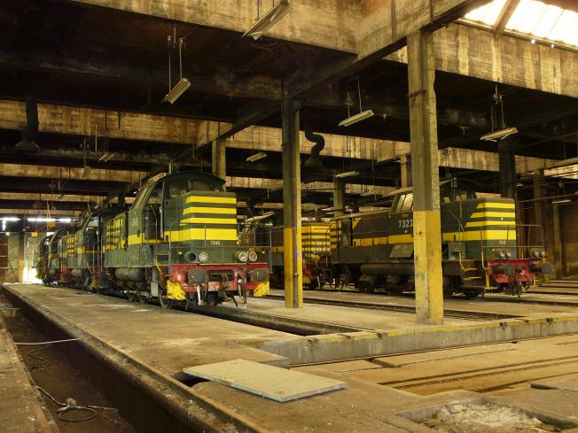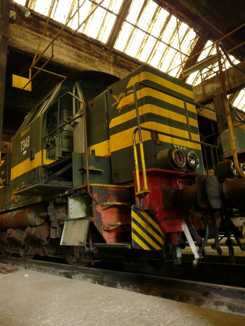 verlassenen Halle dämmern ca. 25 Lokomotiven.
