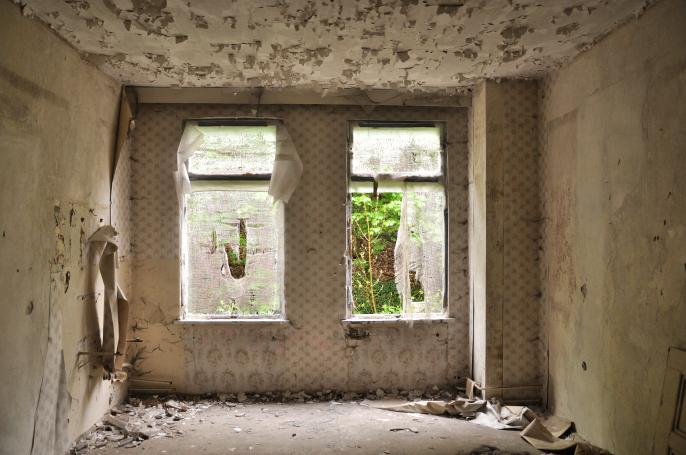 nur noch einige marode Mauern von einem