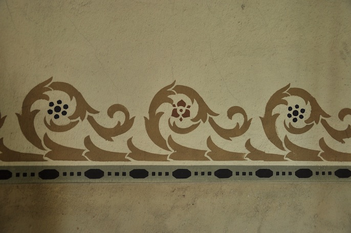 Reste der ursprünglichen Wandgestaltung auf Brusthöhe