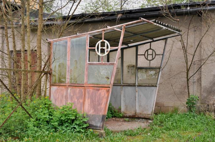 nichts demoliert, nur abblätternde Farbe und ein leere, aber doch vom Lauf