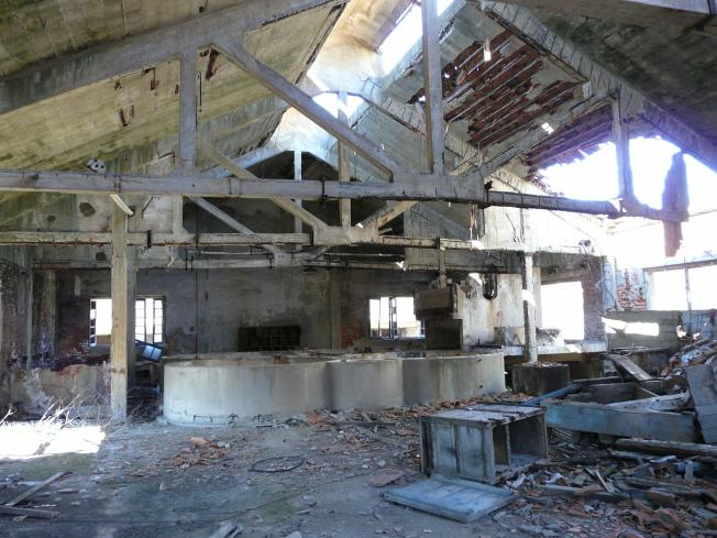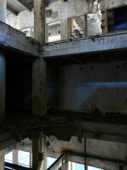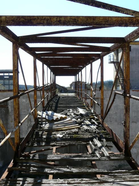 Silos noch bis unters Dach. Die Stege die einst von