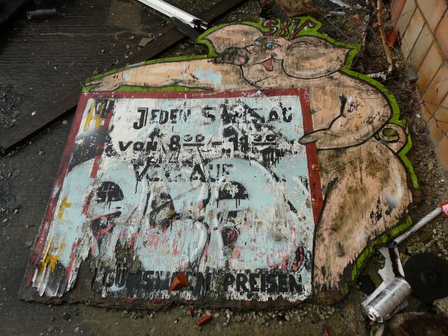 Ein Schild, einige Papiere, mehr ist nicht