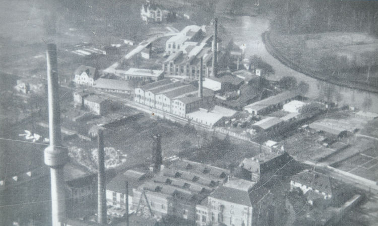 Luftaufnahme von ca. 1930. Der markante Turm vom ersten Bild befindet