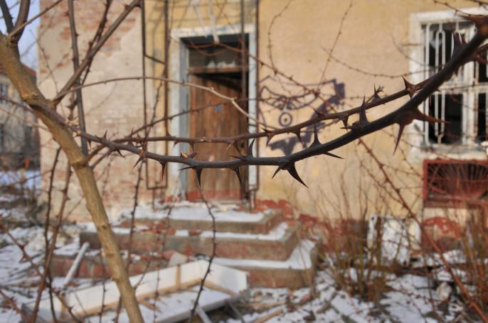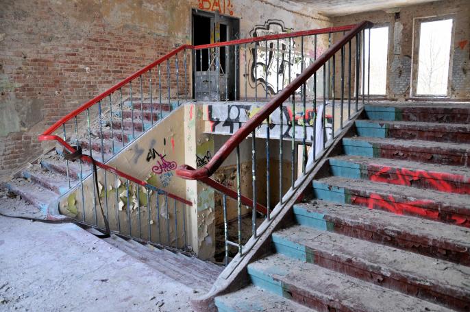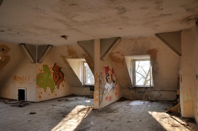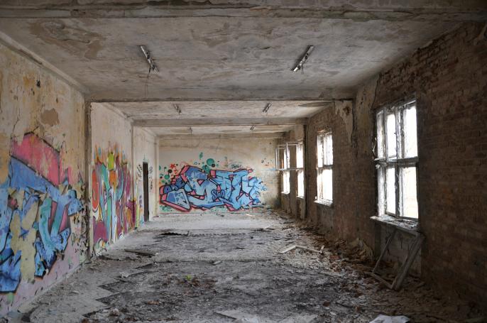 Gebäude und ein weiterer Plattenbau sind der klägliche Rest