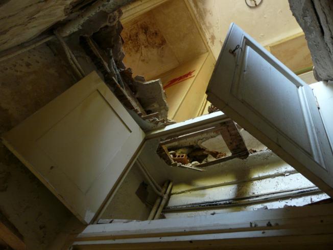 zum einen die Treppe schlicht weggebrochen ist und zum anderen