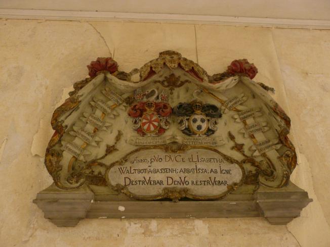 Eine der Grabplatten aus dem 16. Jahrhundert im Kreuzgang